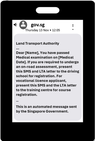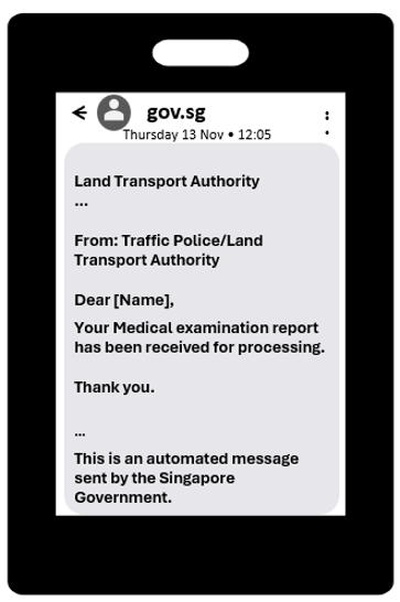- 2nd SMS you received from LTA indicating that your medical submission has been accepted
